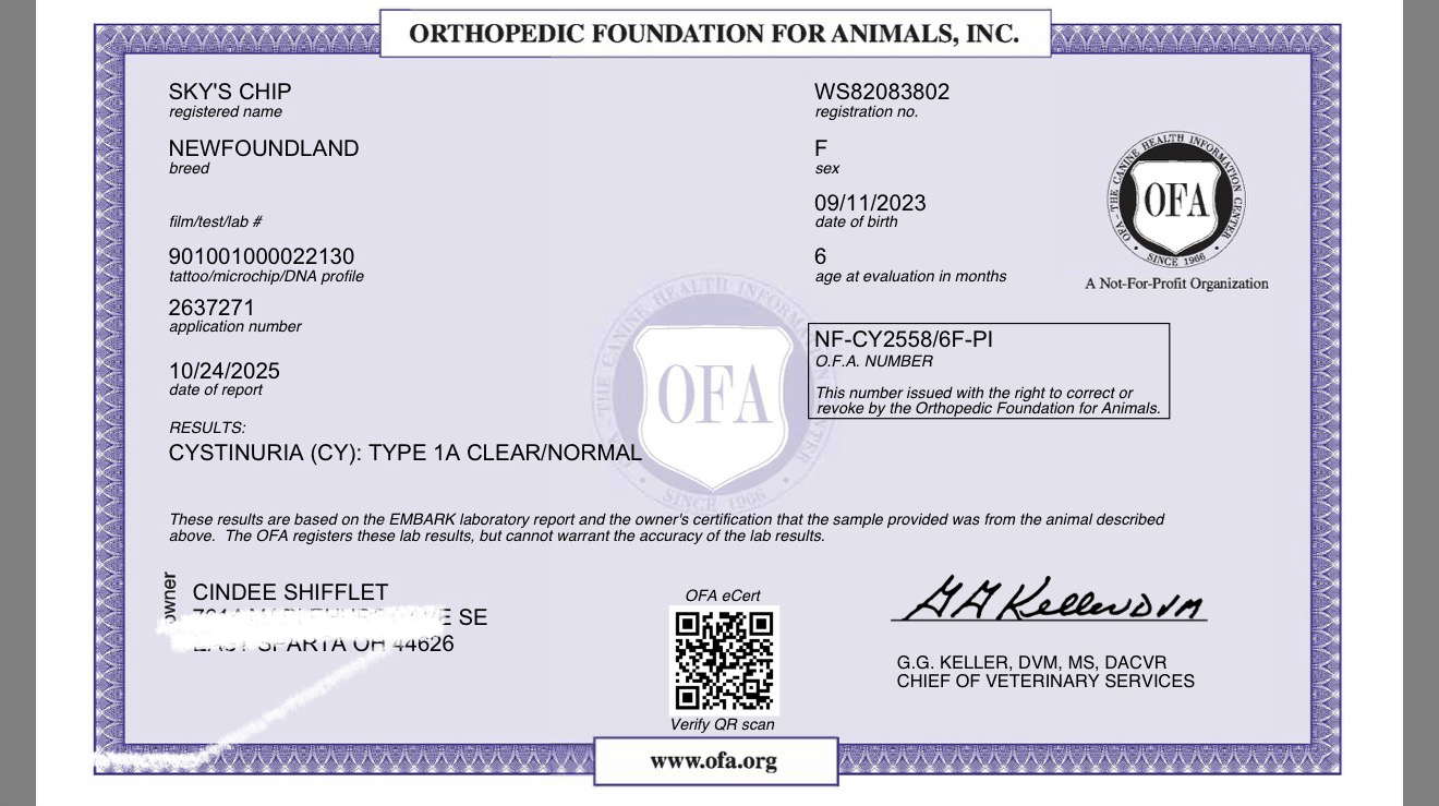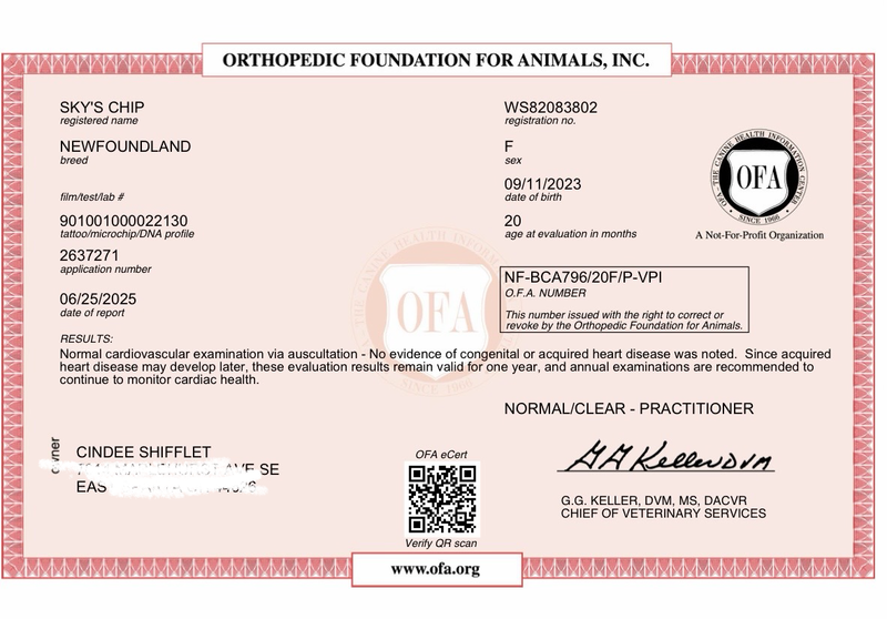 OFA certificates